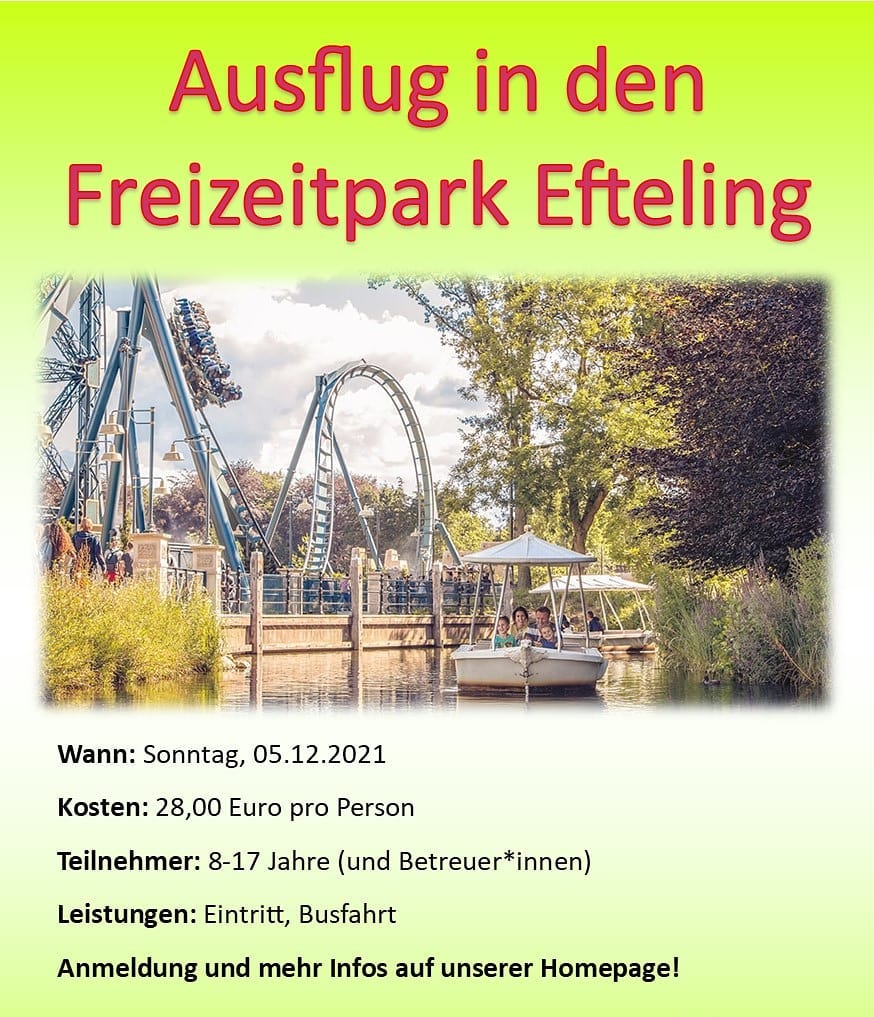 Sagt euren Vereinen, Jugenden, Kindern und Jugendlichen und seid beim Ausflug in den Freizeitpark Efteling dabei! ☺