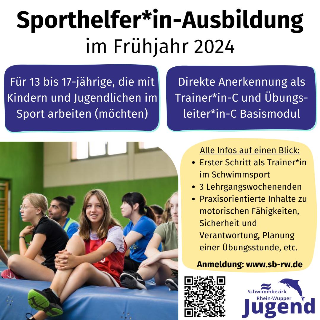 Die Ausbildung zum/zur Sporthelfer*in ist der erste Einstieg in die sporttheoretische und -praktische Arbeit mit Kindern und Jugendlichen. Die Qualifikation ist optimal für das Unterstützen und Anleiten von Gruppen am und im Wasser, Planung und Durchführung von Angeboten der sportlichen und außersportlichen Kinder- und Jugendarbeit und Anleiten von Spielen und Übungsstunden.